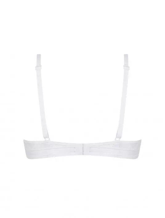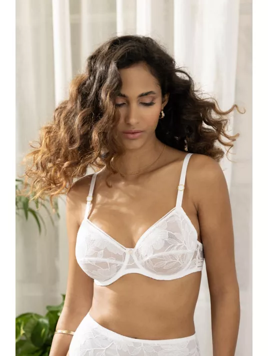 Le soutien-gorge Dentelle Rebelle Antigel est confectionné en laize de dentelle, orné d'un élastique fantaisie à la base de la basque et d'un petit élastique au niveau des décolletés. Des anneaux décoratifs sur les bretelles, ainsi qu’un bijou à l’entregorge, apportent une touche d'élégance.