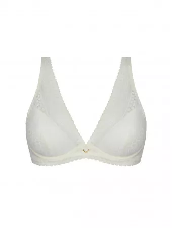 - Bandeau-shaped bra with half-covering cups (half-cup type) forming a horizontal strapless-like neckline superbly dressed with a graphic lace / fishnet yoke for assumed glamor. The perfect bra for a summer backless dress since it allows you to hide its straps for breathtaking shoulders.
