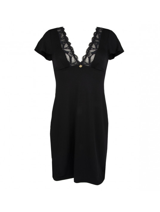 Short-sleeved nightie from the Stricto Sensuelle collection from Antigel by Lise Charmel, black color.