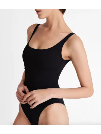 Iconic Eres, acclaimed for its pure line, this racerback one-piece swimsuit opens onto a straight neckline framed by thin straps.