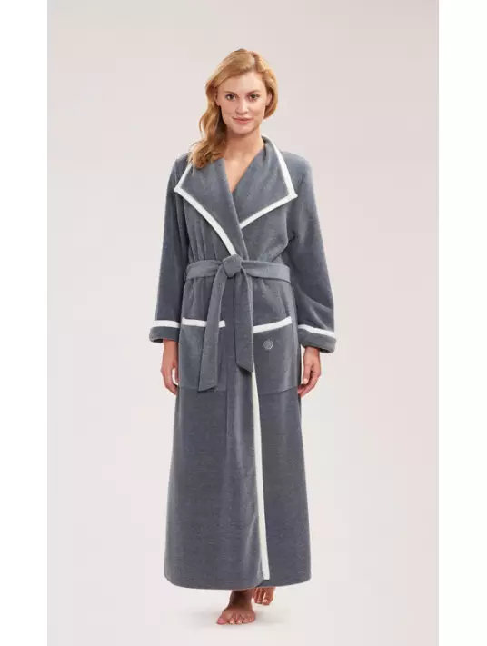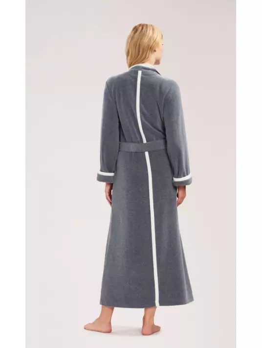 This dressing gown goes down to the ankles and is tied with a belt, in front, on the sides or behind, it's up to you !