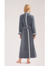 This dressing gown goes down to the ankles and is tied with a belt, in front, on the sides or behind, it's up to you !