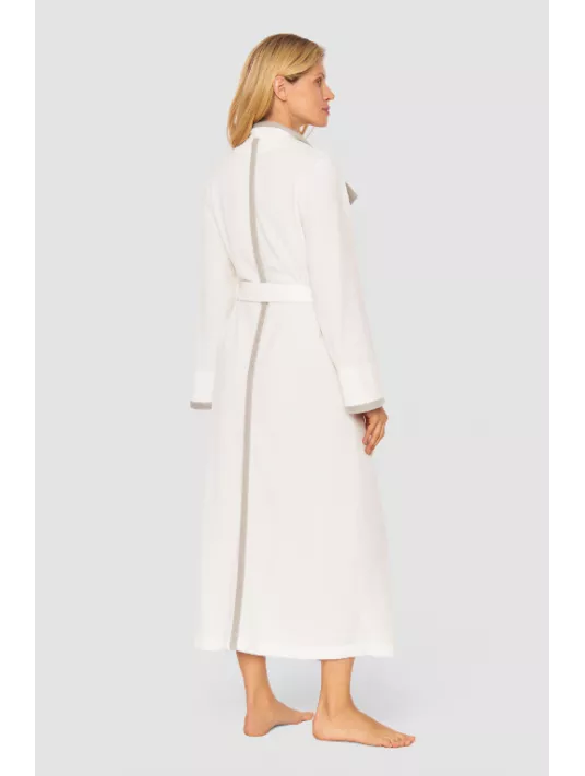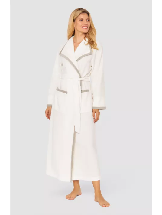 This dressing gown goes down to the ankles and is tied with a belt, in front, on the sides or behind, it's up to you !