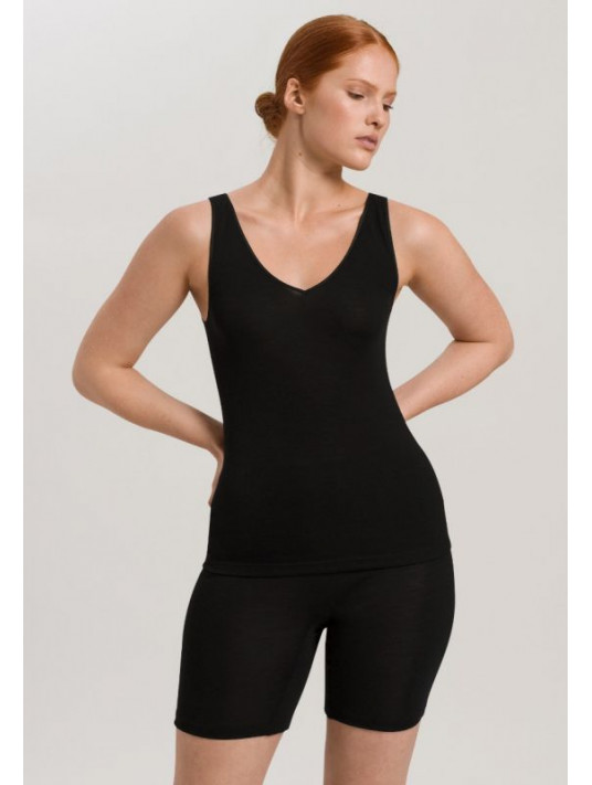 The Hanro top in wool and silk has adjustable straps, a slight V neckline for wearing over-under, ideal for slipping under a blouse or sweater.