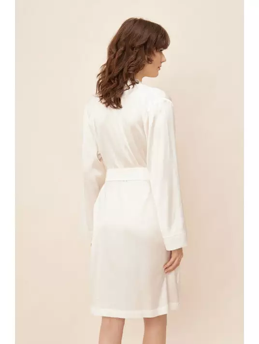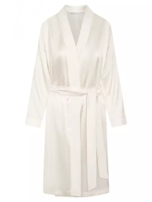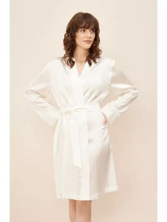 Belted negligee made of high quality silk that is fluid and elegant to wear.