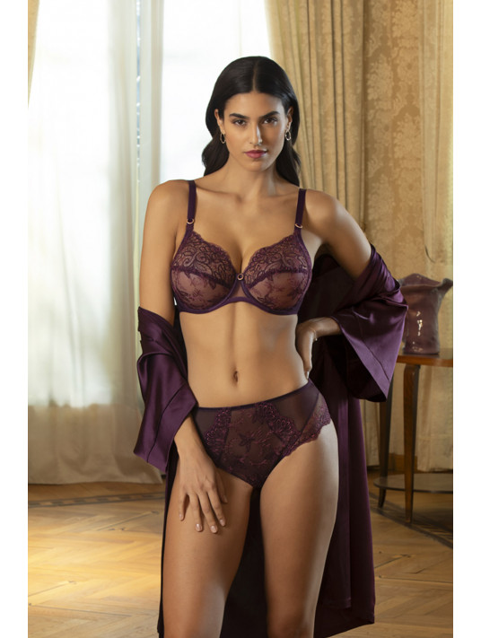 Part of the Élégance Artist collection, this bra celebrates contemporary chic, blending soft, refined shades of Cassis and Plum for a sensual yet understated mood. Airy embroidery and fine soutache details trace the natural elegance of swirling foliage, evoking the poetic grace of autumn. With its structured cuts and artful finishes, this piece exemplifies the artisanal excellence of Lise Charmel.