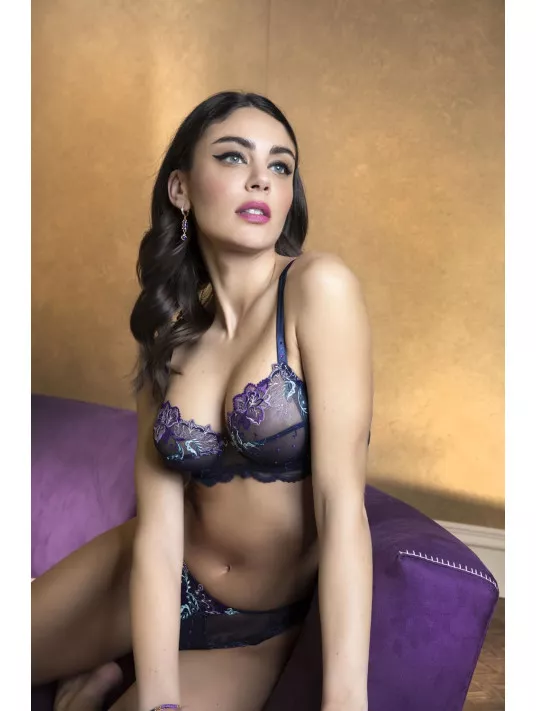 The Déesse Désirs collection by Lise Charmel, with its sexy and refined style, highlights the mysterious beauty of nature. The sumptuous and original Mauve Désirs color evokes the magic of captivating flowers on a Midnight Blue background.