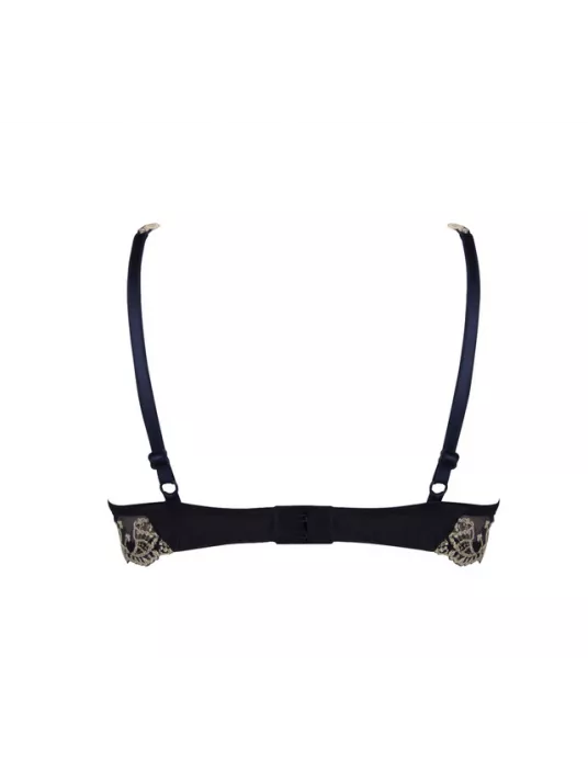 Bottom of cup and back yoke in plain silk satin. Delicate satin bow and jewel located between the breasts.