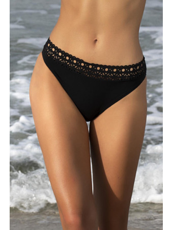Long-sleeved tubular knit t-shirt with lace inlay on the front neckline.