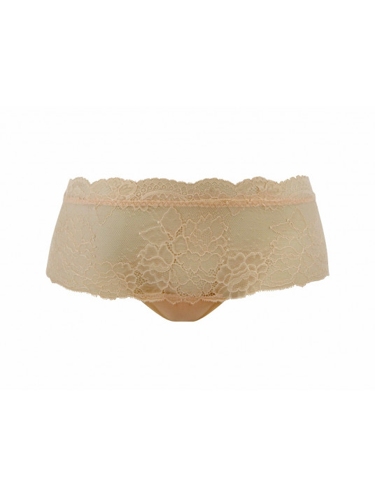 Seductive low-rise shape. Slightly uncover the buttock and subtly interlock the sides.