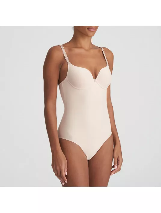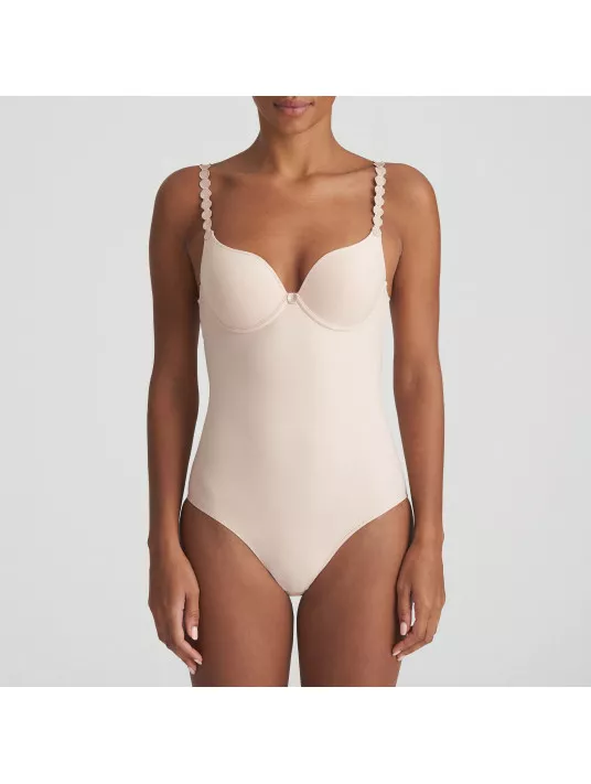 Body with padded cups and sweetheart neckline. Caffe Latte: a modern nude tone. Refined and elegant.