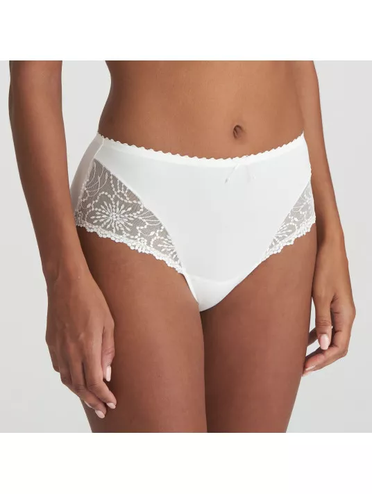 These high-waisted briefs stand out for their elegance and femininity, enhanced by sparkling embroidery on the hips.