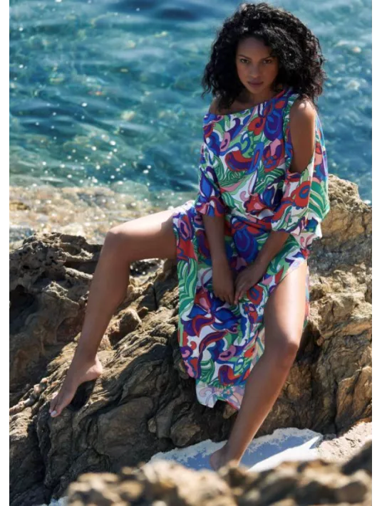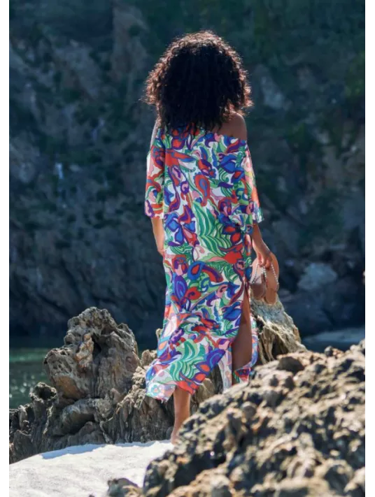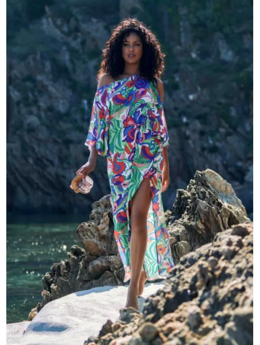 The Twiggy long dress is of unparalleled refinement. This dress is adorned with a print in vibrant shades that will instantly brighten your mood.