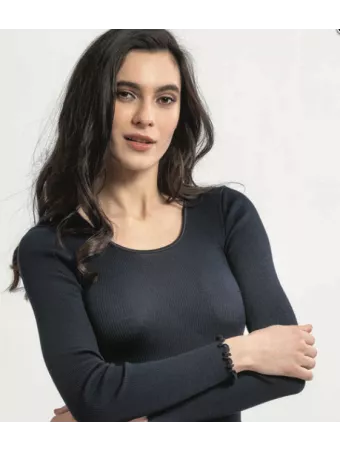 Long-sleeved top in pleated knit Wool and silk from the Moretta brand