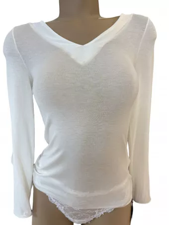 Moretta Long-sleeved top ivory WOOLEN SILK