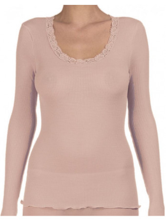 Long-sleeved round lace neckline nude WOOLEN SILK