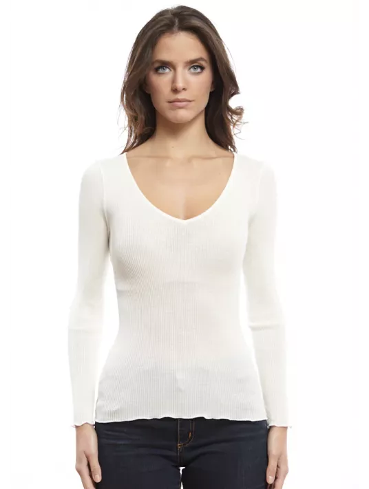 The pleated Merino wool knit is mixed with silk for a very pleasant touch. Regulation of temperature and humidity