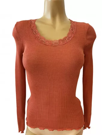 Fine long-sleeved sweater in extra fine merino wool and silk, decorated with a delicate satin finish for a refined and minimalist look.