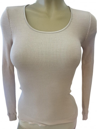 Long-sleeved top in fine ribbed knit, made of pure silk organza, embellished with a refined satin border.