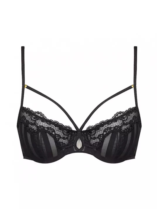Full cup wire with lace incrustration, removable straps and piping
