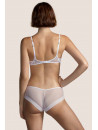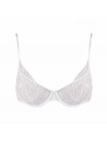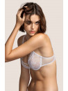Underwired bra, available in cup sizes B to E. The internal structure of the tulle is visible in the middle of the chest and in the details of the back. The rest of the back is lace. Internal structure similar to our successful model Tarsilia.