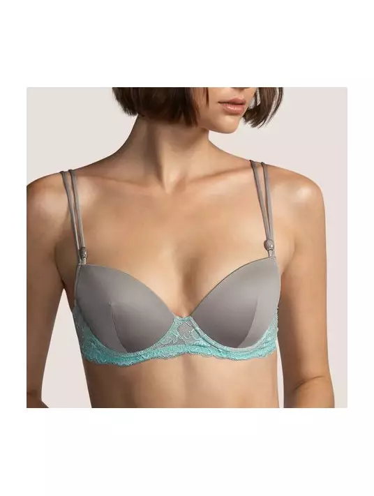 Available in cup sizes B to E. Sahara, which contrasts with the aqua green color of the lace, opaline. The perfect combination for clothes that want to be discreet with a touch of femininity.