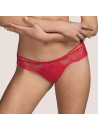Tanga all in red lace, with details in satin fabric at the waist and some Swarovski crystals on the front.