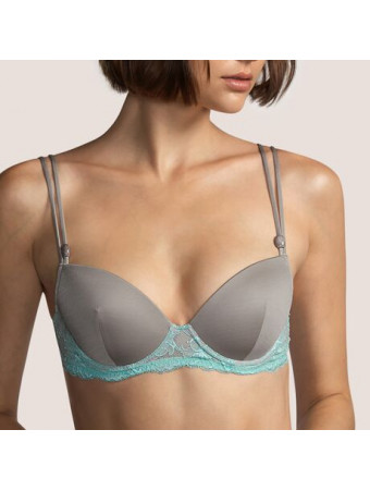 The models feature a perfect mix of elastic tulle, embroidered with plumetis and floral patterned Leavers lace. All pieces have tulle spaghetti straps, some of which are decorated with a gold jewel.
