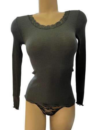 The pleated Merino wool knit is mixed with silk for a very pleasant touch. Regulation of temperature and humidity