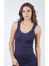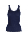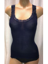 Tank Top made of a precious and natural intimate blend of Merino extra fine wool and top quality pure silk with the most elegant and feminine French leavers lace, certified and numbered as true “Dentelle de Calais"