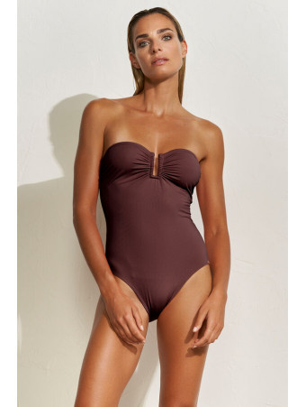 Eres bustier iconic shape, with anti-slip band that is recognizable by its gathered cups separated by a U-shaped fitting.