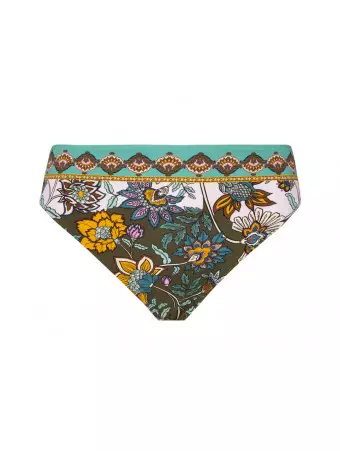 The elasticated back band ensures optimal comfort during swimming. Golden rings in suspender departures for a touch of seduction. Back closure by clip. Multiposition straps, expandable and adjustable.