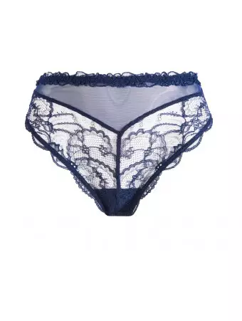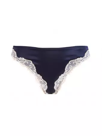 Calais Leavers lace thong front and back. Embroidered scalloped braid at the sides.