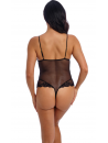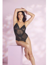 This striking black bodysuit blends contemporary design with romantic allure. Featuring bold floral lace paired with delicate sheer mesh, it creates a look that's both daring and refined. The thong-style back enhances your curves, while the soft cotton gusset provides all-day comfort. Reveal it under a blazer to embrace the irresistible lingerie-as-outerwear trend.