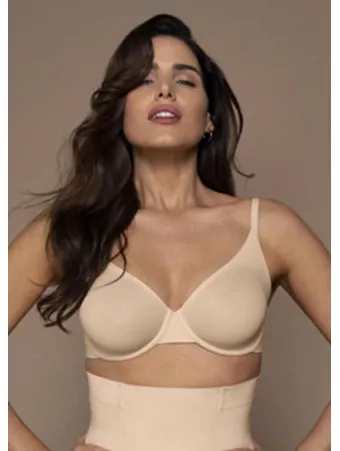 The 3-part cups wrap and slightly center the bust for a naturally round curve and a neckline enhanced by a discreet opening.