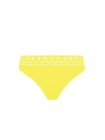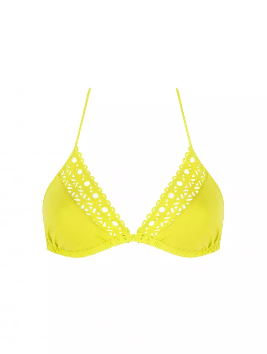 Bande ajourée au décolleté . Bonnets doublés uniquement pour le coloris jaune .
