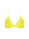 Bande ajourée au décolleté . Bonnets doublés uniquement pour le coloris jaune .