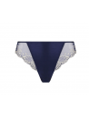 Slip fantaisie confortable au porter. Devant en satin de Soie et côtés en tulle brodé. Ce slip fantaisie offre un dos emboîtant réalisé en maille satinée.