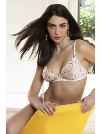 La richesse graphique de la broderie magnifie la finesse de la dentelle Leavers de Calais. Sur fond transparent, les motifs de Camélias se posent délicatement sur la peau. Les coupes légères avec de magnifiques détails mettent en valeur une silhouette élancée avec confort et maintien parfait. La Lingerie en Soie flatte le corps.