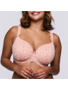 Soutien-gorge à coque fines en forme de cœur avec bonnets moulés confortables et coupe élégante. Rose vintage, imprimé brillant.