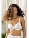 Le soutien-gorge Dentelle Rebelle Antigel est confectionné en laize de dentelle, orné d'un élastique fantaisie à la base de la basque et d'un petit élastique au niveau des décolletés. Des anneaux décoratifs sur les bretelles, ainsi qu’un bijou à l’entregorge, apportent une touche d'élégance.