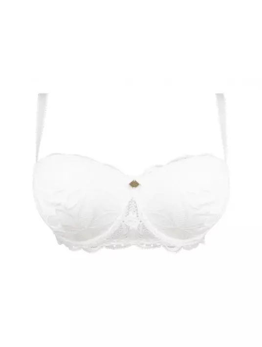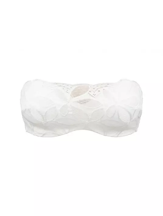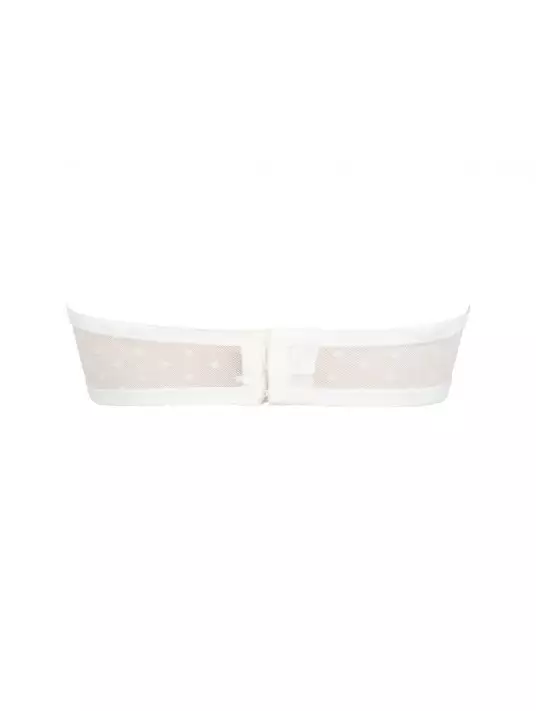 -Soutien-gorge forme bandeau aux bonnets mi-couvrants (de type corbeille) formant un décolleté horizontal façon bustier superbement habillé d'un empiècement de dentelle/résille graphiques pour un glamour assumé. Le soutien-gorge parfait pour une robe estivale à dos nu puisqu'il vous permet de dissimuler ses bretelles pour des épaules à couper le souffle.