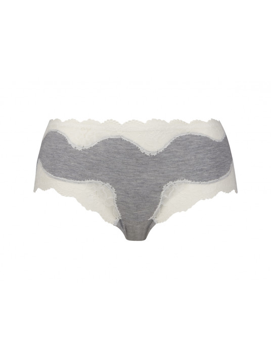 Shorty en modal. Taille, cuisses et dos en galon de dentelle.