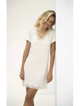 Tee-shirt en modal. Décolleté devant et bas de manches en galon de dentelle.