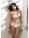 Des mailles labellisées, « moulable » et « coupe à cru ». Un lien textile multipositions et amovible combiné à un astucieux bijou doré qui offre plusieurs vies à sa parure. Une ligne jeune femme confort et inclusive qui balance entre beauté des coupes épurées et sensualité.