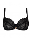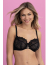 Soutien gorge souple à armature en dentelle. Bijou ''infini'' doré à l'entregorge, inséré dans un ruban satin. Bretelles à la continue legèrement pailetté.