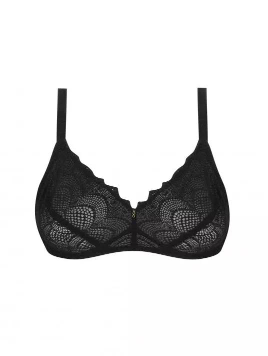 Soutien gorge souple sans armature en dentelle. Bijou ''infini'' doré à l'entregorge, inséré dans un ruban satin. Bretelles à la continue legèrement pailetté. Bretelles avec une grande amplitude de réglage.