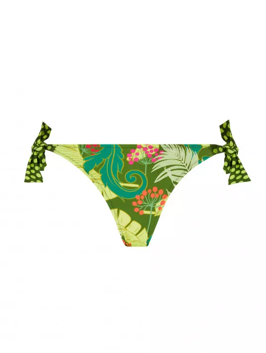 Slip en maille avec liens à nouer sur les côtés à pois - imprimé végétal.