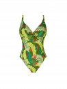 Maillot une pièce Nageur en maille imprimée végétal avec bonnets noués à l'entregorge pour régler la profondeur du décolleté.