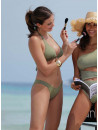 Haut triangle en maille unie brillante. Décolleté plongeant sublimé par un anneau bijou travaillé à l'entre-gorge. Se noue élégamment au cou et dans le dos.